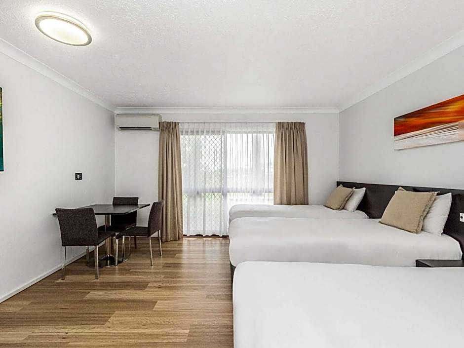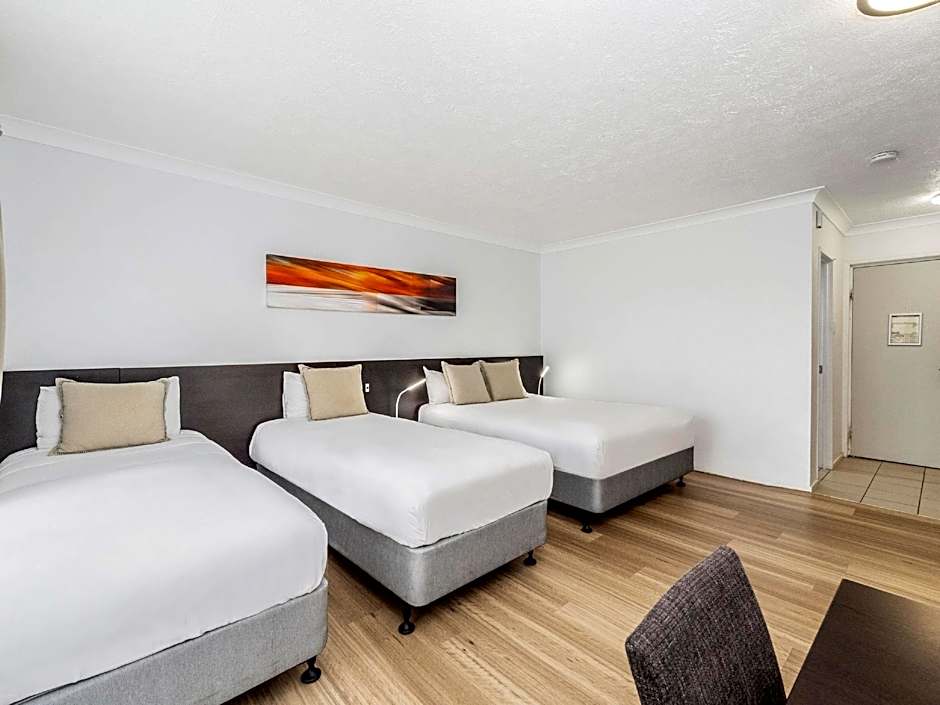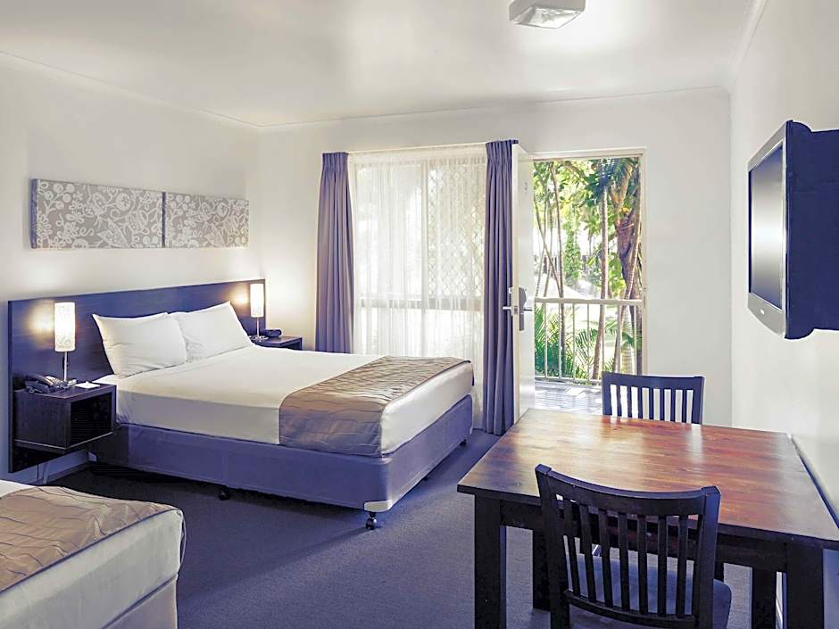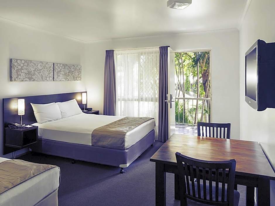 This spacious room offers a queen and a single bed. The room leads out on the spacious lawns and gardens of the hotel. You can open up the windows to take full advantage of the beautiful North Queensland weather.